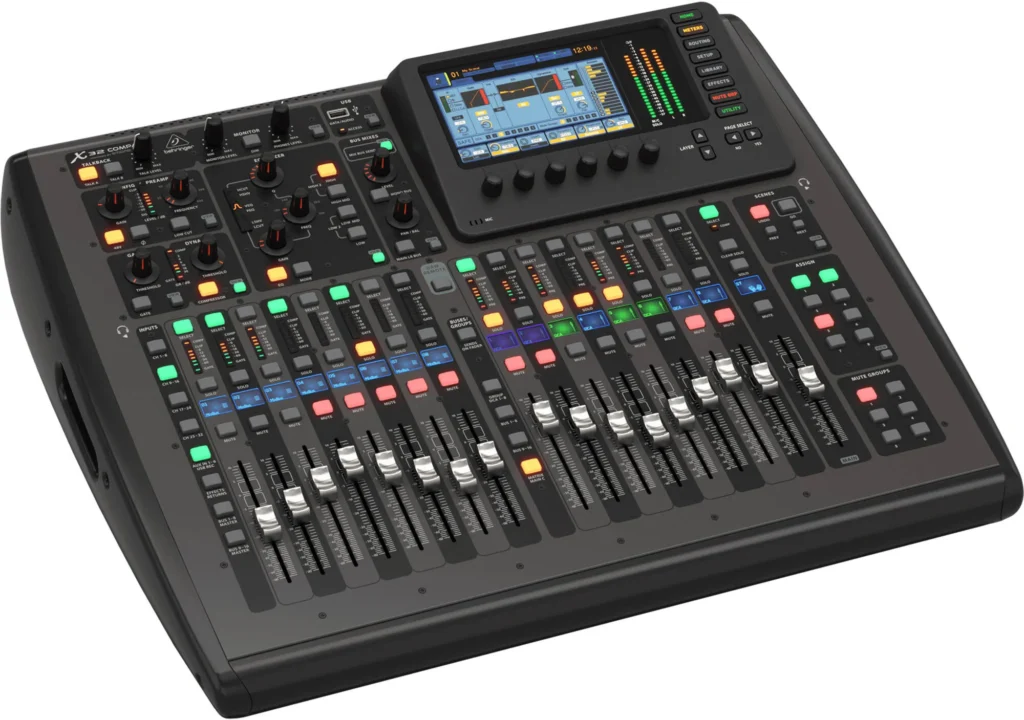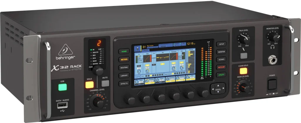 5″ ekranlı, 17 faderlı, rack’a takılabilir masa formu. Monitör/yan sahne ve yayın miksine çok uygun. - Sabit kurulum, IEM/monitor rigi, uzaktan miks (tablet/PC) → X32 Rack